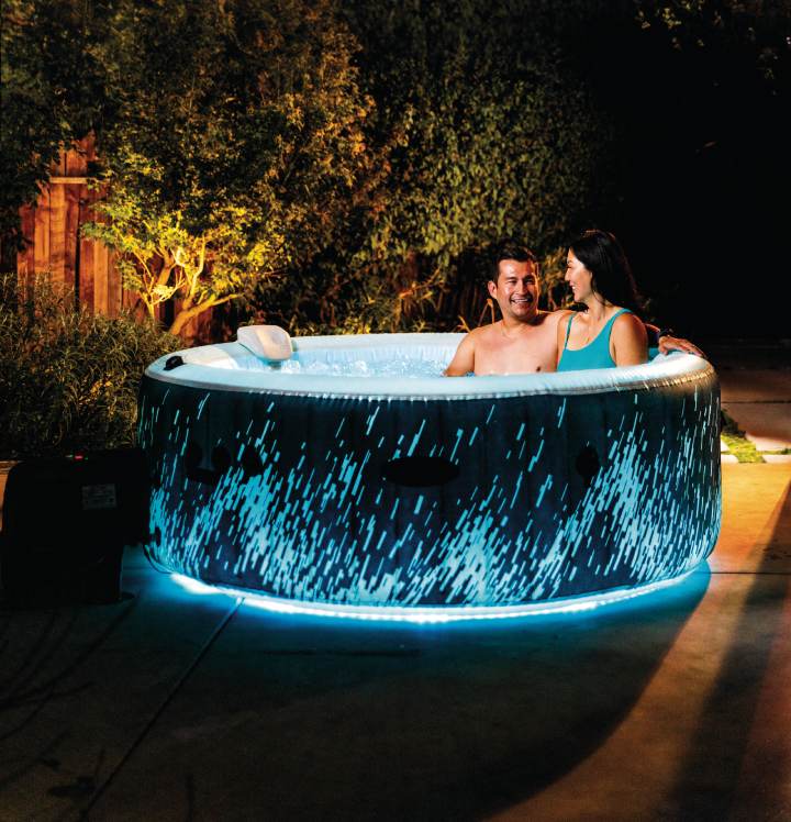 Create a unique atmosphere thanks to the colorful LED lighting of the hot tub. Thanks to the user-friendly control panel, you can easily transform your home into a luxurious oasis. Patented Fiber-Tech™ technology ensures the strength and stability of the massage tub. The integrated FastFill™ Inflation system ma kes setting up a breeze. PureSpa™ Glow Deluxe is equipped with 140 bubble jets with heated air bubble technology.